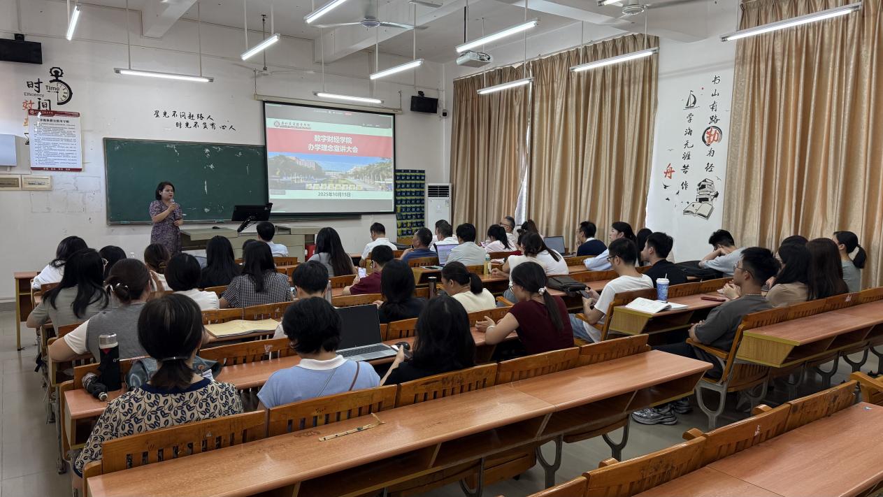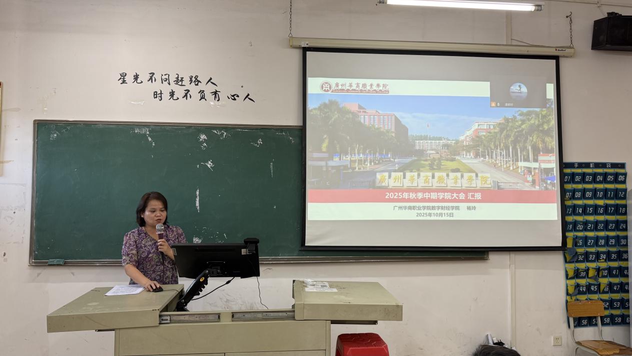 2025年10月15日下午14:30,数字财经学院在博学楼B506召开全体教师会议,江门校区教师通过腾讯会议线上同步参会。会议由杨玲院长主持,李纯辉副院长作主题发言,童国梁副校长出席会议并作指导讲话,数字财经学院全体教师参加。