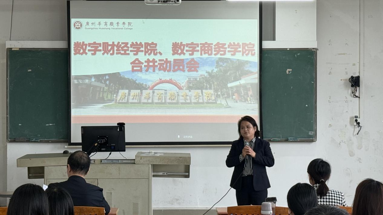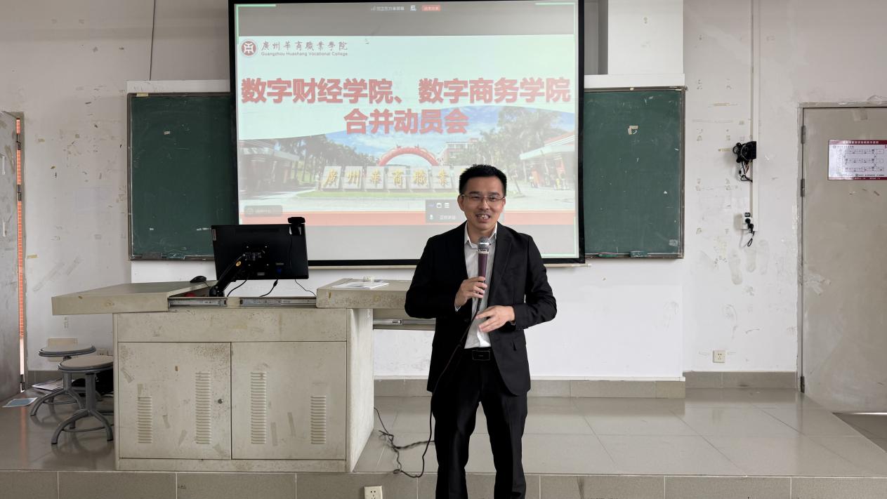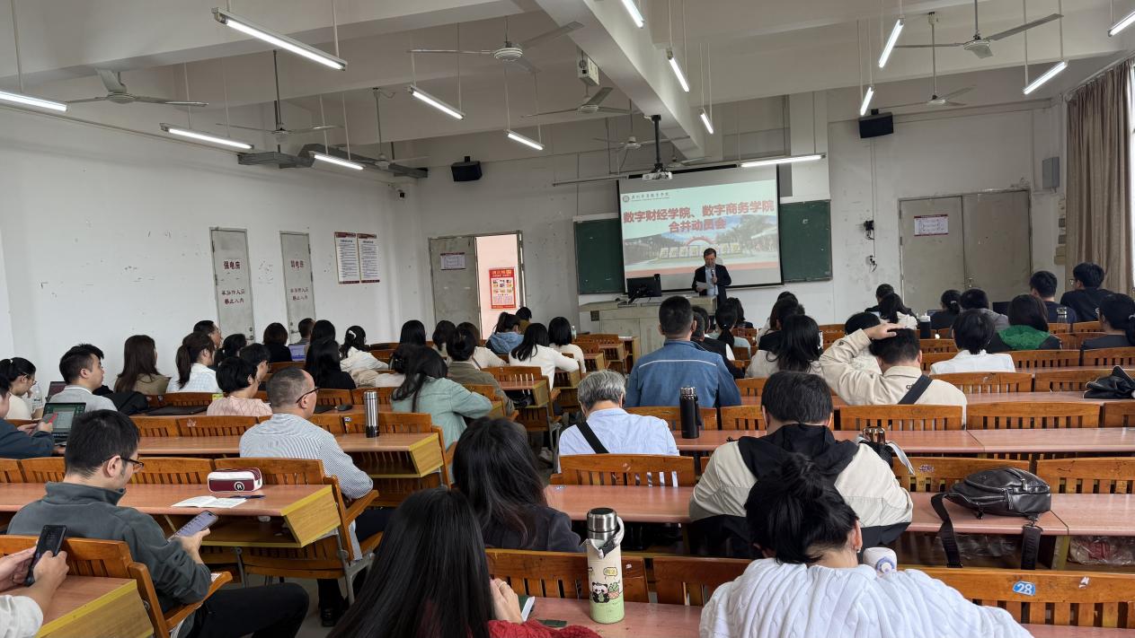2025年10月22日下午2:30,数字财经学院与数字商务学院在博A507召开学院合并动员会,两院全体教师共同出席,会议由杨玲院长主持,朱小平副校长、张丽菠副院长、黄泽栋副院长等参会并发言。