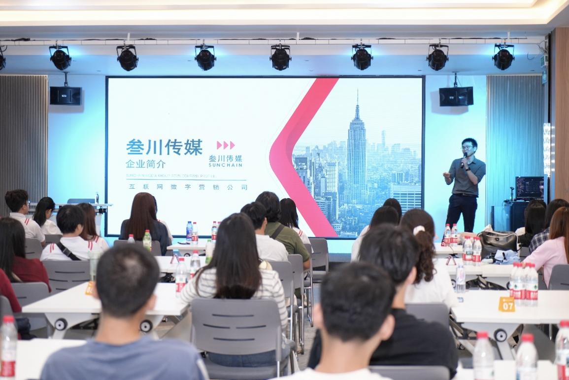 10月20日,数字商务学院电子商务专业与网络营销与直播电商专业师生代表,在广州桃花岛电商咨询有限公司(以下简称桃花岛公司)的组织带领下,赴广州叁川传媒广告有限公司(以下简称叁川传媒)开展企业调研与学生研学活动。此次活动由桃花岛公司提前与叁川传媒深度沟通,精准对接师生调研与研学需求,为校企双方搭建起高效的交流桥梁。作为全国电商传媒领域的头部企业,叁川传媒分享了直播运营、内容策划、达人短视频、AI生成等领域的实践经验,为师生搭建了 “理论对接产业” 的学习平台。数字商务学院教师代表李佳慧老师、于春秀老师、苏冠南老师和桃花岛公司林玮峰老师共同与学生代表合影留念,为本次活动拉开序幕。