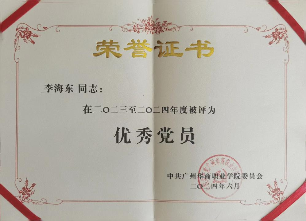 从教以来,他先后荣获“2024 年优秀党员”“2023 年度优秀教师”“2023 年度优秀党员”“2023 年秋季学期优秀班主任” 等荣誉,2024 年 12 月凭借论文《数字技术背景下高职院校大数据与会计专业升级改造路径》获广东省高等教育学会第三届高等教育研究优秀成果奖(学术论文类)三等奖,是集 “教学、科研、育人、服务” 于一体的复合型职教教师。