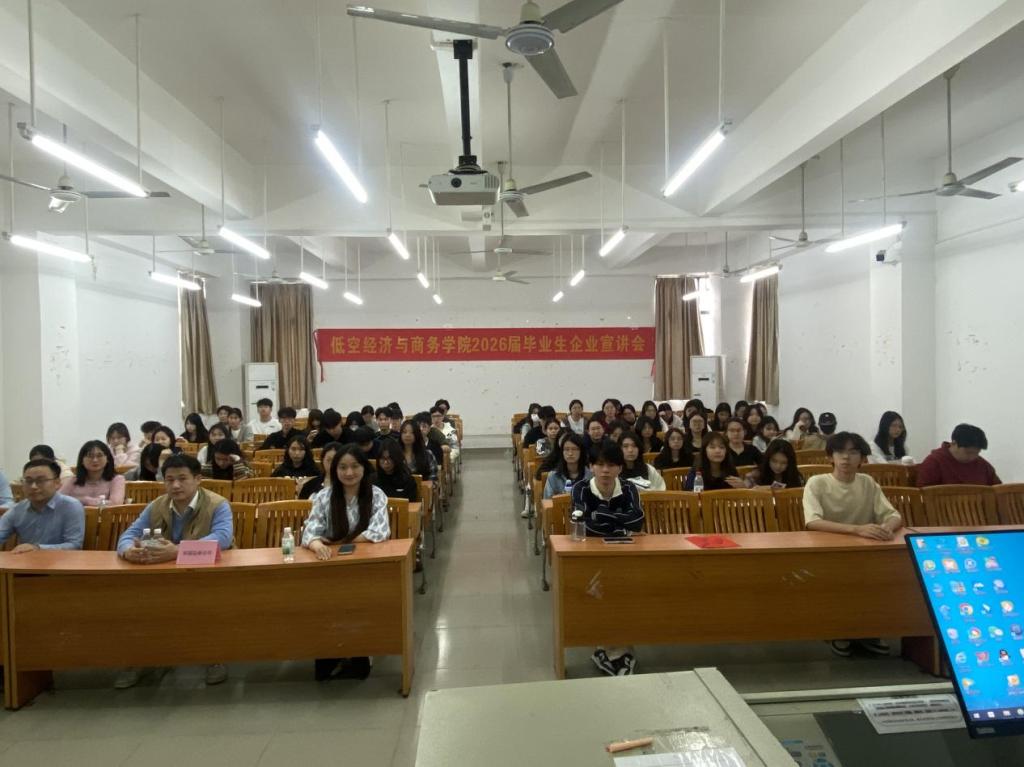 为切实拓宽应届毕业生就业渠道,搭建校企人才对接平台,帮助毕业生精准把握就业机遇,11 月 12 日(周三)14:10-17:00,低空经济与商务学院在博B207 举办2026届毕业生企业宣讲会。参会专业学生为2026届大数据与会计专业、大数据与财务管理专业、金融服务与管理专业、人力资源管理专业、工商企业管理专业学生。