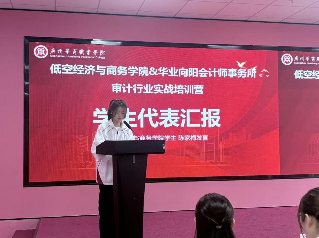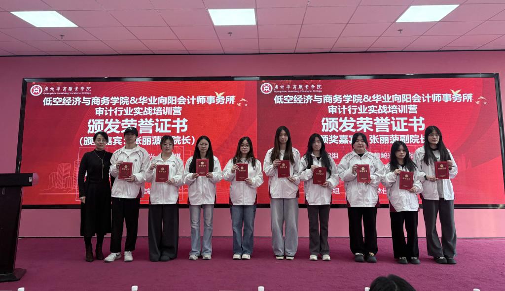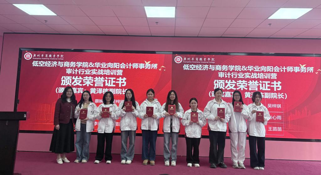 近日,广州华商职业学院低空经济与商务学院与华业向阳会计师事务所联合举办的“审计行业实战培训营”结营仪式在广州华商职业学院创科713举行。华业向阳会计师事务所事业合伙人邱淑湘女士,低空经济与商务学院张丽菠副院长、潘虹副院长、黄泽栋副院长、财务与会计教研室刁慧娜主任,以及周磊、龙双华、王溪、陈玉婷、柳晓倩等教师代表共同出席,与参训学员共同回顾成果、展望未来。