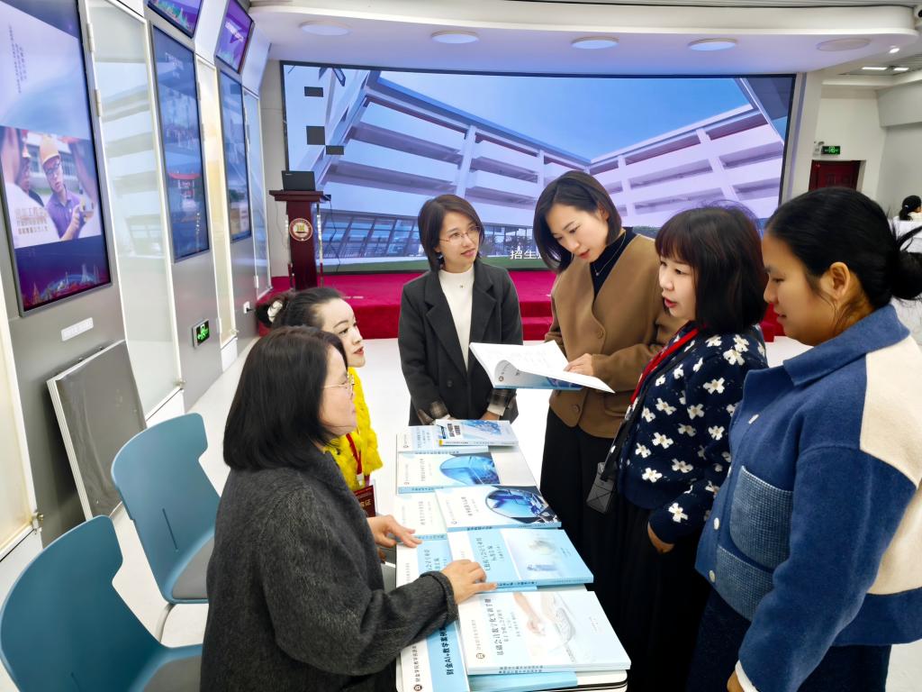 1月10日下午,来自全国各地的院校代表、企业嘉宾及行业专家齐聚成果展示厅。我校低空经济与商务学院提前完成了展位布置,现场陈列的财经数字化系列教材、产教融合成果视频等内容备受关注,集中展现了“双元共育 运维兼修”的建设成果,吸引了众多与会高校代表与企业嘉宾驻足参观。全国金融职业教育教学指导委员会委员杨则文教授参观后给予高度评价,称赞我校校企合作成果紧密贴合产业发展需求。财经数字化系列教材兼具专业性与实用性,为复合型财税人才培养提供了优质支撑,对深化产教融合、推动行业人才培养具有积极示范意义。