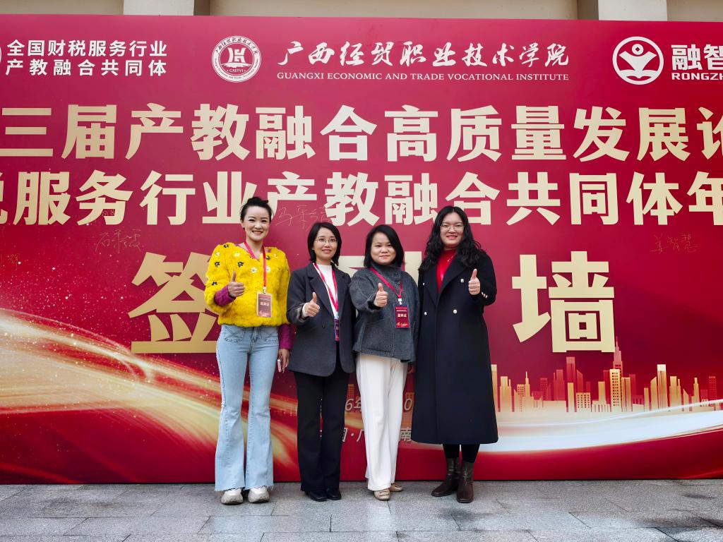 1 月 10 日至 11 日,全国财税服务行业产教融合共同体年度工作会议在广西南宁隆重召开。广州华商职业学院低空经济与商务学院杨玲院长、潘虹副院长、财务与会计教研室主任刁慧娜老师、骨干教师李宇媛老师一同受邀参会,与来自全国高校、行业企业的专家学者齐聚一堂,共商产教融合创新发展,探讨数智化背景下财税人才培养新路径。