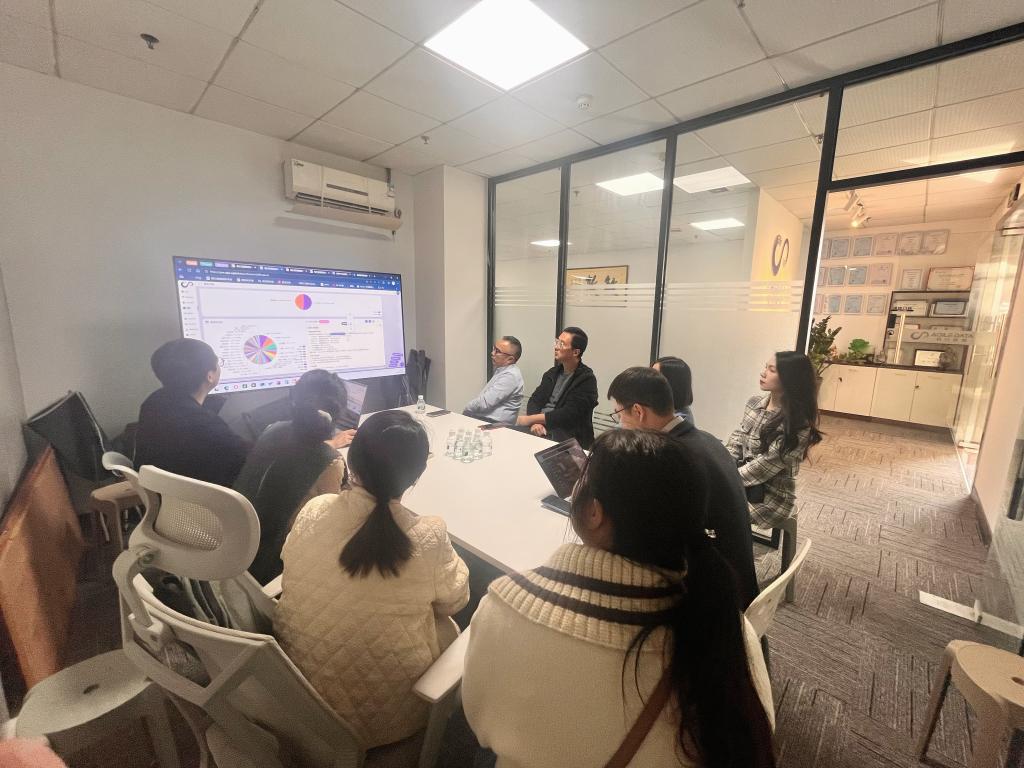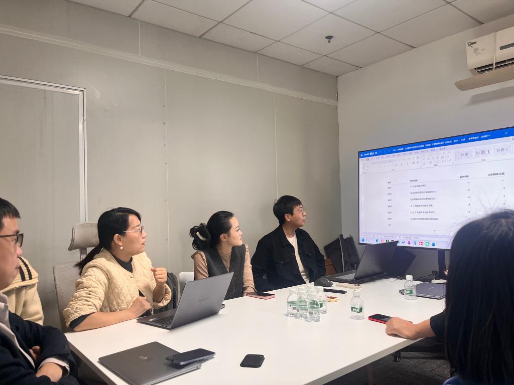座谈会上,刘建平总经理首先展示了企业在业财一体化与AI赋能方面的技术平台及多场景应用案例。学校李纯辉主任汇报了前期课程建设的初步成果,潘虹副院长进一步强调,课程开发必须坚持以真实产业需求为导向,融合企业运营中的业财诊断、数字化转型与智能决策等环节,并逐步落地至电子商务、酒店管理、汽车服务等学院特色专业场景中,实现“教学—产业”闭环。