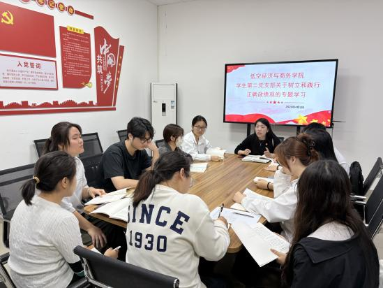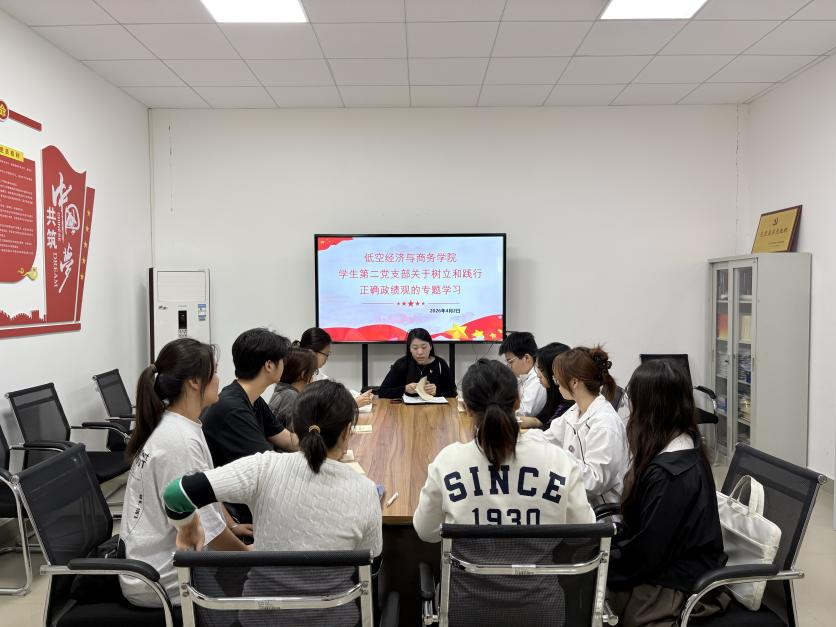 为深入学习贯彻习近平总书记关于树立和践行正确政绩观的重要论述,低空经济与商务学院第二党支部于2026月4月2日在博A509开展专题学习会,集体学习《习近平关于树立和践行正确政绩观论述摘编》。