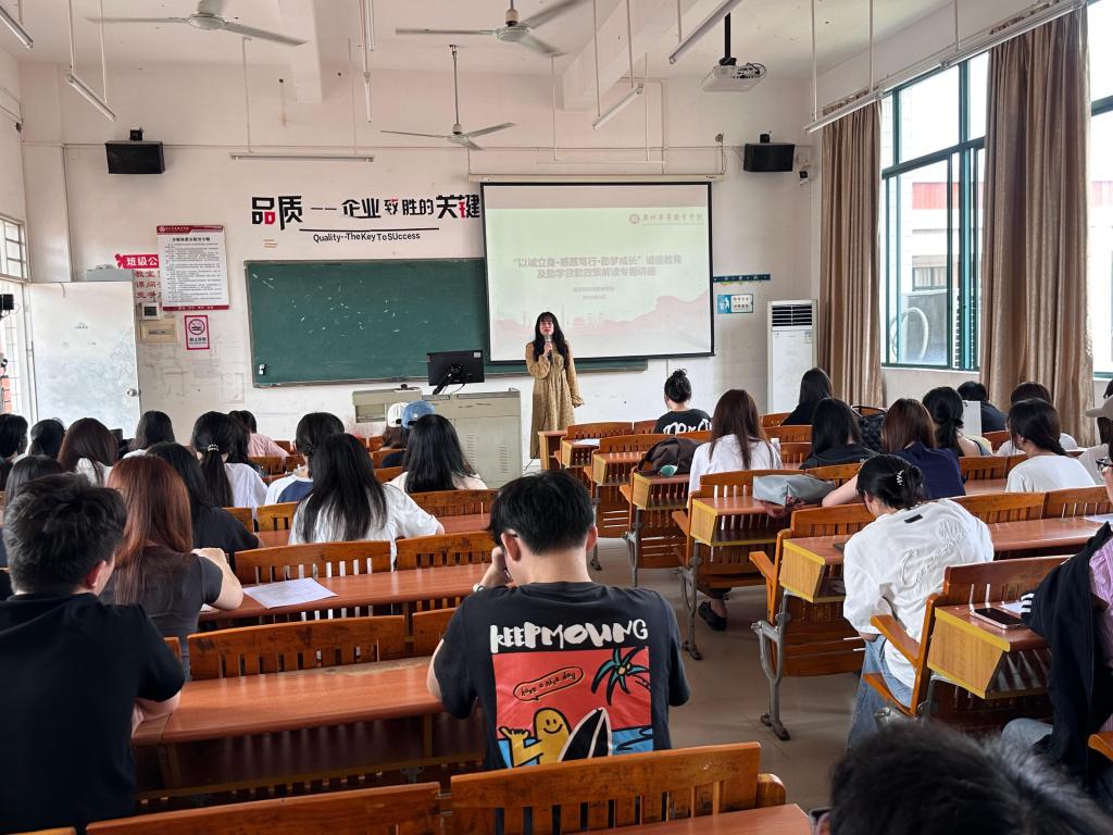 讲座中,肖婷老师围绕资助政策红线、个人征信管理、助学贷款履约、感恩励志践行四大板块展开深度讲解。现场系统解读家庭经济困难认定流程、资助申报材料真实性要求,明确严禁伪造证明、隐瞒家庭情况、重复申领资助等失信行为,并同步宣讲失信行为的违纪查处后果、资格撤销细则与档案留存规定,让同学们清晰知晓“诚信受助”的具体要求。