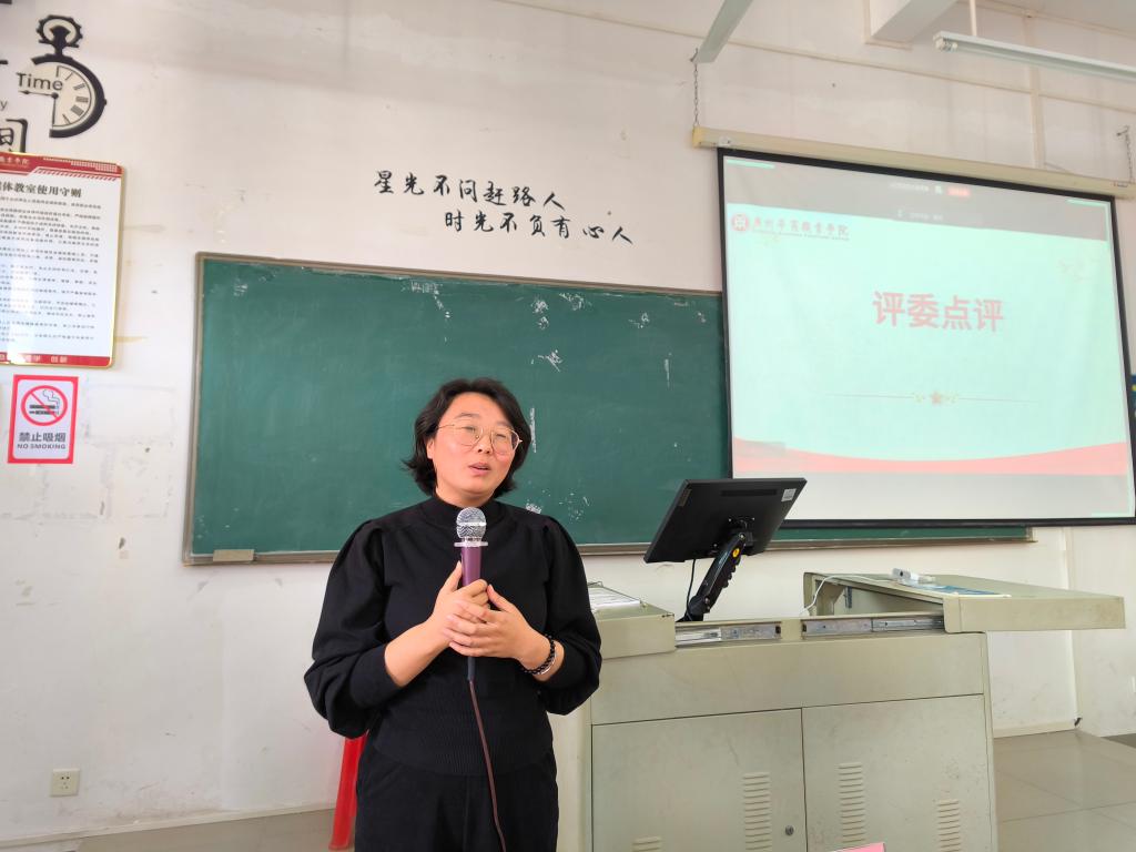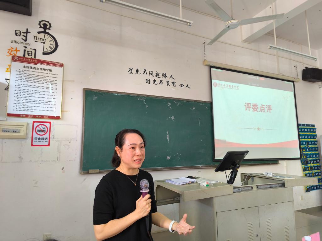 点评环节,三位评委老师围绕参赛文件研读、评分标准对标、教学理念呈现、思政元素挖掘、PPT制作美化、教师仪态仪表等多个关键维度,对参赛选手的表现进行了全面剖析,既肯定了亮点优势,也提出了极具针对性和可操作性的改进建议,助力青年教师进一步提升教学设计与课堂实施能力。特邀嘉宾教务部陈柳红副部长结合自己丰富的指导经验,为参赛选手精准对接校赛、省赛要求,提升教学能力指明了清晰方向。