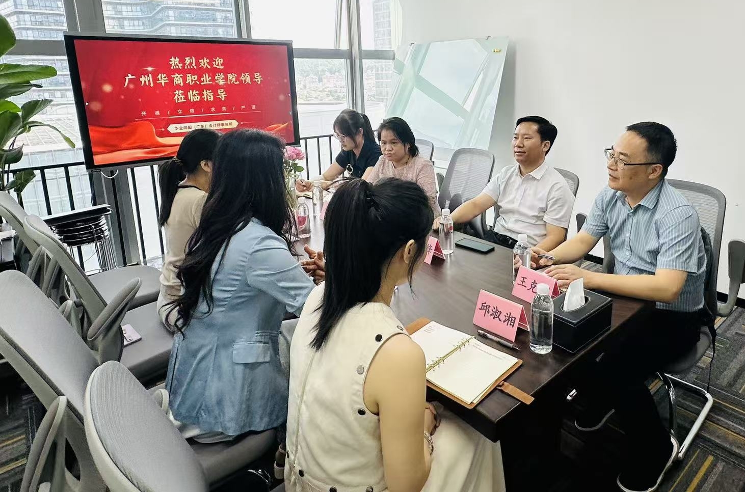 为深化产教融合,创新协同育人机制,2025年10月20日,广州华商职业学院赵永锋副校长、产教融合办公室王克明主任、数字财经学院杨玲院长和柳晓倩老师访问华业向阳(广东)会计师事务所,双方就共建产业学院、深化人才培养与实践教学合作举行了富有成效的洽谈。此行旨在推动校企合作迈向更深层次、更宽领域,共同培育适应行业需求的高素质技术技能型财经人才。