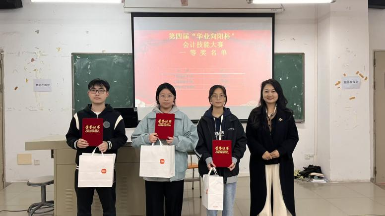 紧接着,杨玲院长向第四届华业向阳杯会计技能竞赛获奖学子表达了诚挚祝贺,并为获奖同学颁发荣誉证书以及定制奖品。