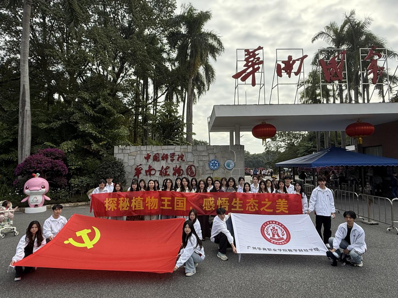 2025年12月11日,广州华商职业学院低空经济与商务学院学生党支部创新学习形式,将主题党日“搬进”华南植物园,开展了一场以“探索植物王国,感悟生态之美”为主题的“行走的党课”。将理论学习的课堂搬到自然之中,让红色信仰在绿水青山间扎根生长。