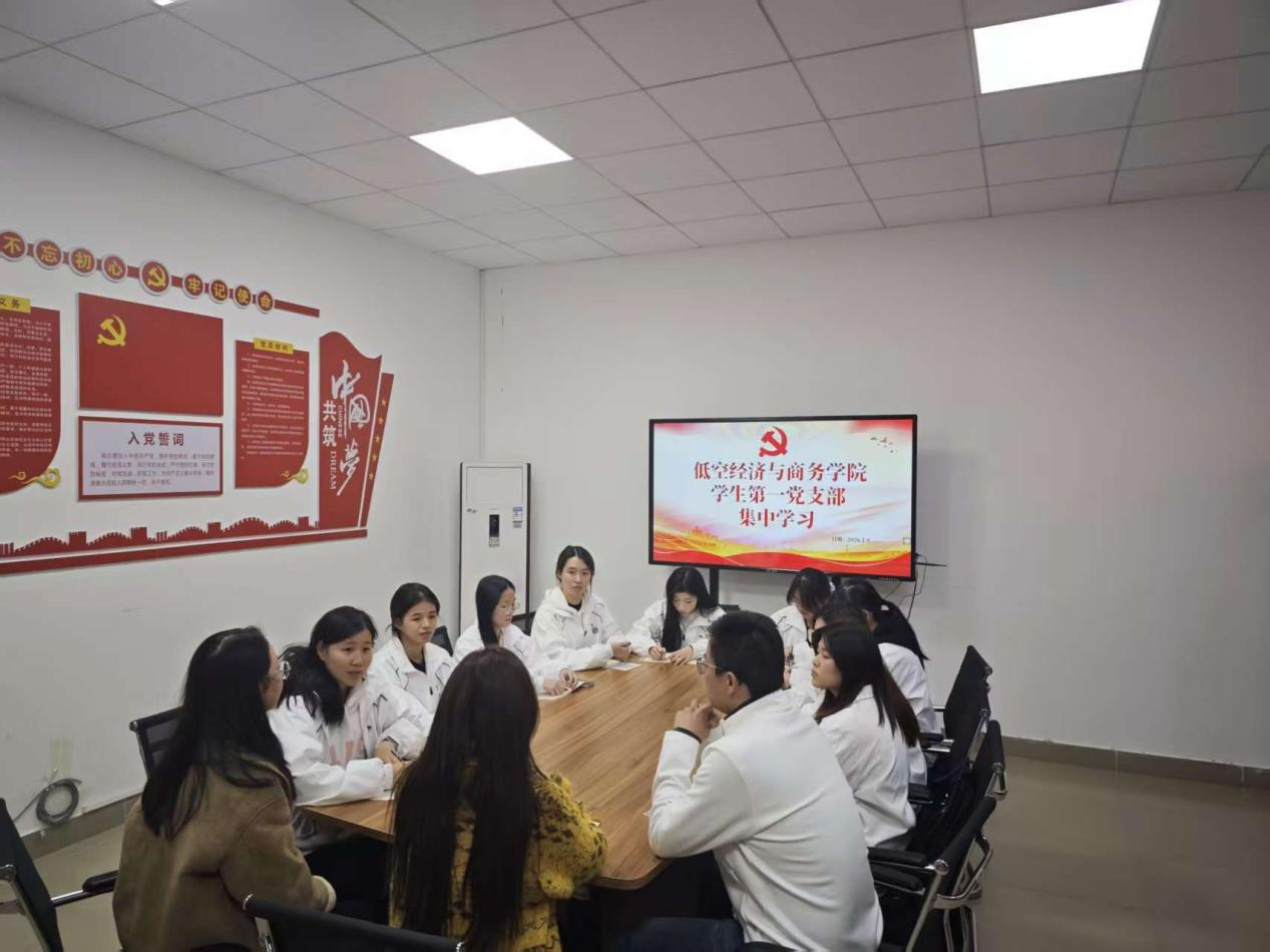低空经济与商务学院学生第一党支部于2026年1月9日开展集中学习,意在让支部成员明确学党史,不只是回顾过往,更是为了汲取前行力量。
