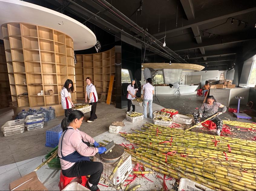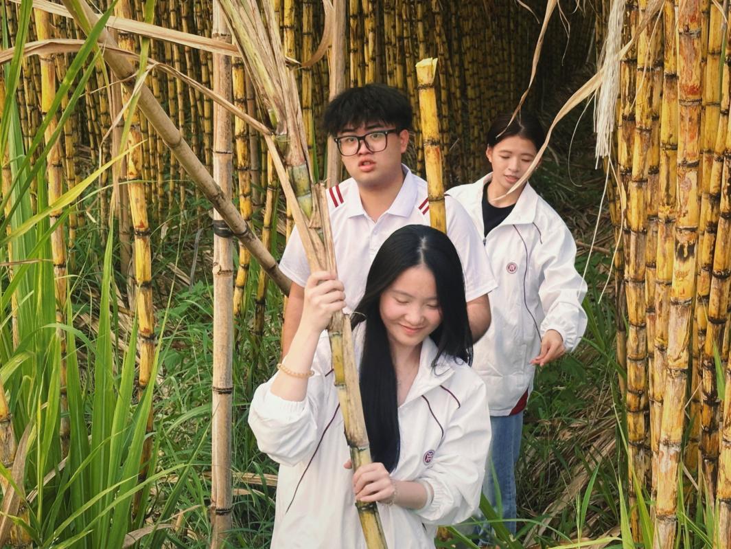 专业赋能,田间地头变课堂。在专业教师的现场指导下,学生主播们化身“农产品推荐官”,将直播间搬进田间地头。镜头前,同学们生动讲述甘蔗的种植故事,细致介绍品种特色、营养价值与多样食用方法,并现场演示甘蔗采收、削皮的全过程,让广大网友直观感受到劳动之美与农产品的原生态魅力。直播间内互动频频、热度持续攀升,一根根甘蔗通过屏幕从田间直达千家万户,切实为农户拓宽了销售渠道,实现了“滞销”变“直销”。