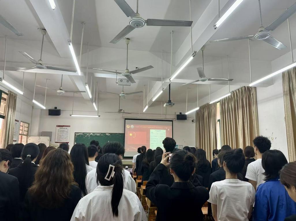 全体代表再次起立奏唱团歌,共青团广州华商职业学院低空经济与商务学院第一次代表大会在激昂的旋律中圆满落幕。