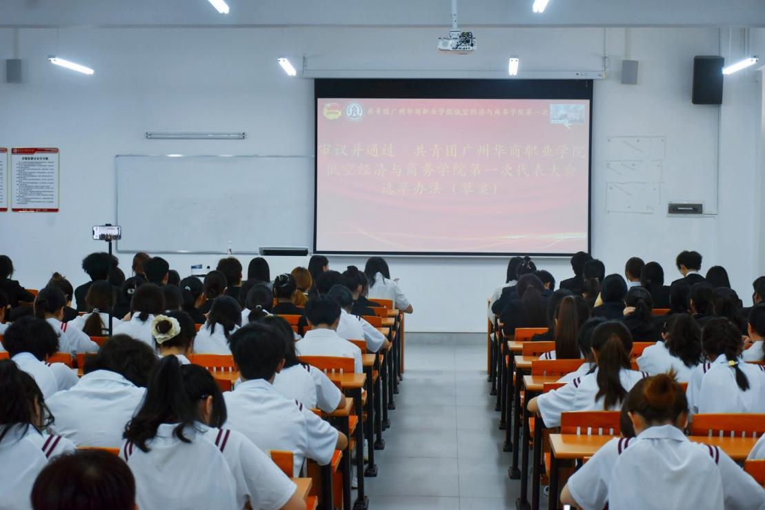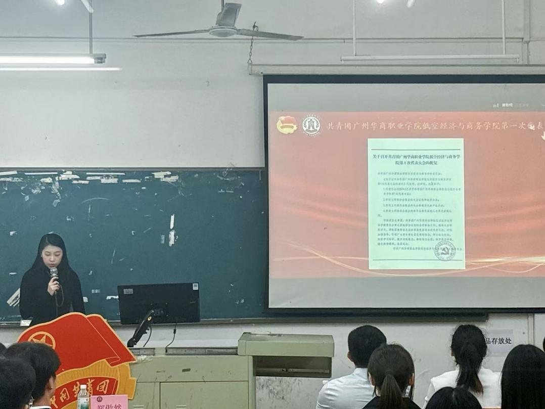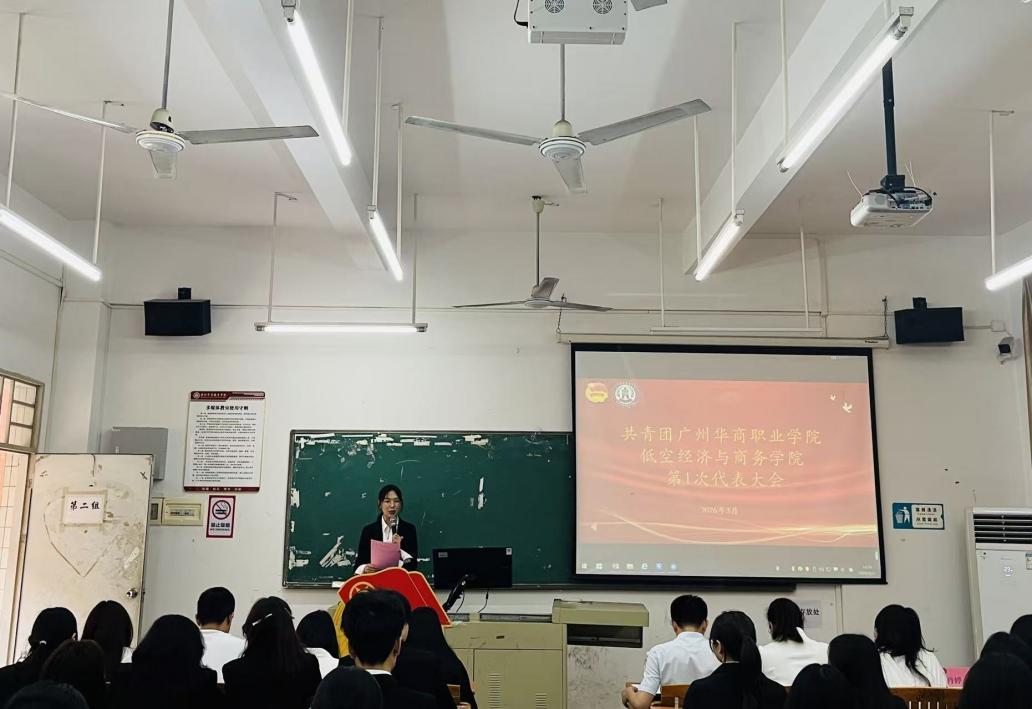 以青春之名,赴时代之约。在二十大精神浸润校园、中国式现代化征程催人奋进之际,2026年3月31日,共青团广州华商职业学院低空经济与商务学院第一届团代表大会在广州、江门两校区同步召开,广州校区主会场设于博学楼B203,江门校区分会场设于2号楼319。全体团员代表肩负全体青年团员的信任与嘱托,以线上线下相结合的方式参会,以饱满热情与昂扬状态共赴青春盛会,擘画学院共青团工作崭新蓝图,书写新时代青年奋进篇章。