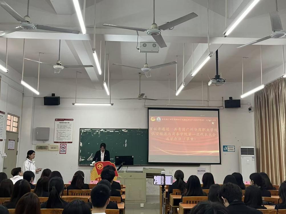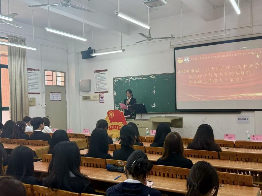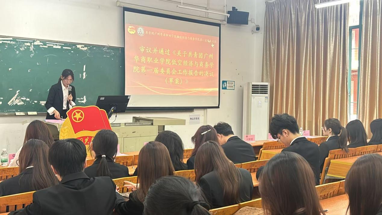 大会审议并表决通过《关于共青团广州华商职业学院低空经济与商务学院第一届委员会工作报告的决议(草案)》,为学院共青团未来工作明确发展方向、凝聚思想共识。