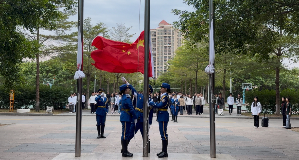 晨曦微露,霞光映照着绿茵场;旌旗猎猎,国歌奏响在校园上空。11月3日清晨,广州校区数字财经学院杨玲院长、党员老师、辅导员老师和大一大二学生身着整齐服装,有序集结于一起,以“仰望国旗,砥砺前行”为主题举行广州华商职业学院第11周升旗仪式,将国防教育与爱国主义情怀融入庄严仪式,用青春视角诠释新时代青年的家国担当,为校园注入浓厚的国防教育氛围。 伴随着激昂的《义勇军进行曲》,护旗手迈着铿锵有力的正步踏过,全体师生肃立行注目礼,鲜艳的五星红旗在朝阳中缓缓攀升,最终定格在湛蓝的天空下。随风飘扬的国旗与师生们胸前的党徽、校徽交相辉映,构成一幅充满家国情怀的动人画面,现场庄重的氛围让每一位参与者都感受到强烈的使命感与自豪感。 升旗仪式结束后,数字财经学院杨玲院长以“仰望国旗,砥砺前行”为主题发表国旗下讲话,她指出,仰望国旗,是一种信仰、一种精神、一种担当,更是一种责任。国家正处于民族复兴的关键时期,财经领域是国民经济的重要支柱。作为财经师生,肩负着培养高素质人才、贡献财经智慧的特殊使命。学习要夯实基础,育人要注重价值引领。所以在之后的道路中,我们要砥砺前行,要有坚韧不拔的意志、攻坚克难的勇气、服务奉献的方向,也要追求卓越的目标。在学术研究、知识探索和实践应用中,要求真务实,在困难中成长、在挑战中提升,全体师生要将仰望国旗激发的力量,转化为砥砺前行的步伐。教师要牢记育人初心,争做“四有”好老师;学生要勤学修德、明辨笃实,掌握专业技能。并提出了作为财经人,要心往一处想、劲往一处使,共同谱写财经学院发展的新篇章。 此次主题升旗仪式,以庄重的仪式感筑牢爱国根基,以鲜活的内容点燃奋斗热情,不仅是一次精神的洗礼,更是一次行动的动员。学院将继续以多样化的形式开展爱国主义教育活动,让红色基因代代相传,让家国情怀深深扎根,为培养有理想、有担当的新时代青年奠定坚实基础! 图文:吴镇宇 李相怡 初审:刘雅馨 复审:杨芳 终审:顾晖