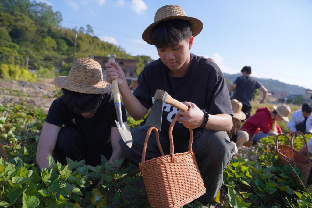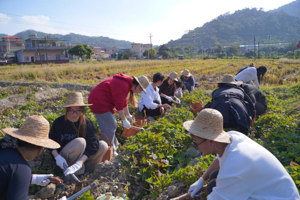为深入践行“以劳践初心 以行砺成长”的实践教育理念,将劳动教育与思政育人、团队建设深度融合,引导干部在实践中锤炼意志、凝聚合力、感悟初心,低空经济与商务学院组织学生干部走进广州市增城区秋天花花农场,开展了一场沉浸式实践教育活动。活动跳出传统教育模式,以田间劳作为载体、以乡野体验为纽带,让干部们在亲力亲为中体悟劳动价值,在协作共进中砥砺成长初心,更在与创业者的深度对话中汲取奋进力量。 参与活动的干部们集结完毕后,迅速整理农具奔赴番薯田,正式开启劳动实践之旅。田间地头里,大家分工协作、相互配合,有人弯腰挥锄挖掘,有人细心清理番薯上的泥土,汗水浸透衣衫却依旧干劲十足。陌生感在共同劳作的默契配合中逐渐消散,新鲜出土的番薯不仅承载着收获的喜悦,更让干部们在躬身实践中直观体会到“一粥一饭来之不易”的深刻内涵,筑牢了崇尚劳动、尊重劳动的思想根基。 挖番薯实践结束的茶歇环节更成为此次活动的“精神加餐”——学生特邀农场的美学创始人围坐畅谈,围绕农场创业历程、生态理念与乡村赋能等话题展开深度采访。“当初放弃城市设计工作回乡,就是想让家乡的土地既保生态底色,又添美学亮色。”创始人分享道,创业初期曾面临村民不理解、市场认可度低等多重困境,但靠着“把乡村美学融入农耕”的坚持,一步步打造出集种植、体验、文化传播于一体的特色农场,用实际行动践行“绿水青山就是金山银山”的发展理念。干部们踊跃提问,从“如何平衡农业生产与美学设计”到“面对创业低谷时的坚持动力”,创始人的真诚分享让大家深受触动。一名干部感慨道,“这种扎根乡土、服务乡邻的创业故事,让我们对‘劳动创造价值’有了更鲜活的认知。” 食育实践、农耕体验与手作创作分组开展。在搭窑、备料、烤制的全过程中磨合协作技巧、提升团队凝聚力,或专注于手作蓝染DIY,在创意挥洒中释放活力、增进情谊。各项实践活动既充满挑战又趣味盎然,让干部们在动手实践中锤炼了担当精神、在分工协作中深化了团队默契。活动尾声,众人围坐一起品尝亲手制作的美食,在乡野风光的映衬下分享实践感悟,从劳动中的协作心得谈到工作中的责任担当,从实践中的成长收获聊到团队建设的优化方向,创始人的创业故事与自身的劳动体验相互印证,让“以劳践初心 以行砺成长”的理念愈发深刻。 此次实践教育活动,是学院将劳动教育、思政教育与干部培养深度融合的创新探索。通过让干部在田间劳作中体悟价值、在协作实践中砥砺成长、在创业故事中汲取力量,不仅有效加强了各部门间的沟通联系,更锻造了一支兼具劳动精神、协作意识与责任担当的干部队伍。未来,学院将持续深化实践教育内涵,丰富活动形式载体,让劳动教育成为干部成长的“必修课”,引导广大干部以劳树德、以劳增智、以劳强体、以劳育美,将实践中凝聚的合力、锤炼的初心与汲取的奋进力量,转化为推动学院高质量发展的强大动力,携手在奋进之路上勇毅前行、再创佳绩。 文/黄熳 初审/郑傲然 复审/杨芳 终审/黄泽栋