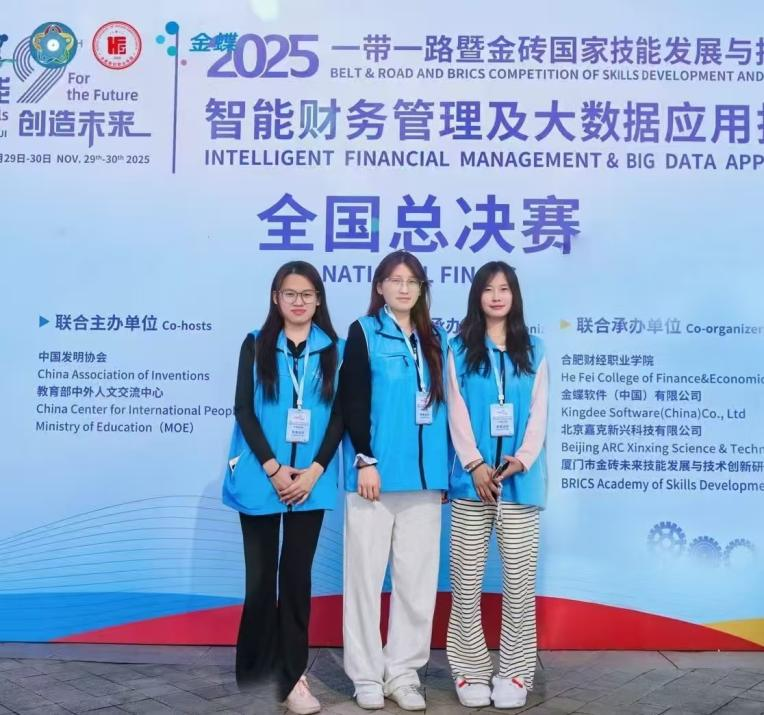 2025年11月30日,由金砖国家工商理事会中方理事会、“一带一路”暨金砖国家技能发展国际联盟等机构共同主办的2025“一带一路”暨金砖国家技能发展与技术创新大赛“智能财务管理及大数据应用技能”赛项全国总决赛圆满结束。本次大赛属于国家级A类竞赛,共吸引来自全国27个省、市、自治区的78所高校代表队参赛。广州华商职业学院低空经济与商务学院专业教师何明蔚、周磊指导学生参赛。