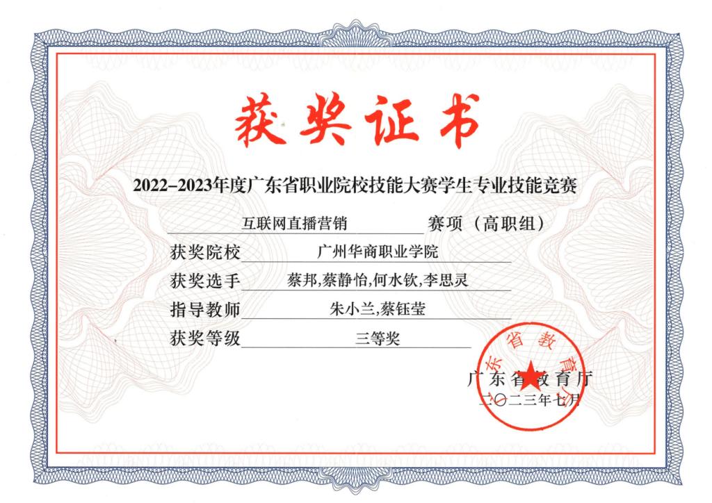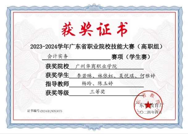 低空经济与商务学院获奖无数,学生累计获省级及以上奖项 300 余项,连续三年获职业院校专业技能大赛会计技能竞赛广东省高职组一等奖、省职业院校高职组供应链管理赛二等奖等殊荣(部分如下)